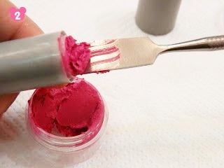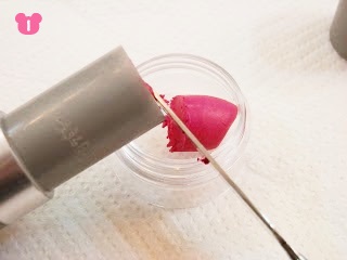 Você vai precisar de: 1 espátula (ou objeto similar) 1 potinho e claro, 1 batom.