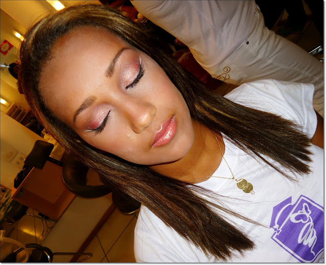 Essa gracinha de 13 aninhos me pediu uma maquiagem rosa! Não exagerei em pele, contorno, sombra marcada/esfumada por ela ter carinha de criança.