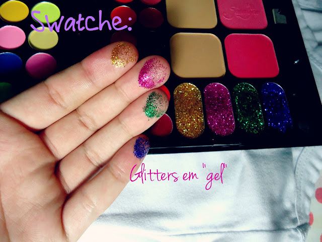 A textura desse glitter é bem diferente, é um gel mesmo, bem consistente e só por cima que tem glitter, ou seja, se tu usar muito o brilho se acaba e fica só a pastinha, muito chato isso =/ Não testei ainda, mas acho que super funciona como fixador de glitter...