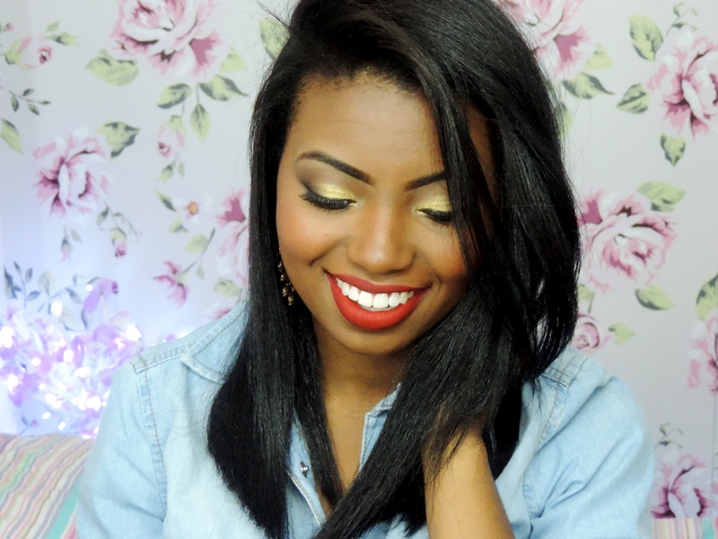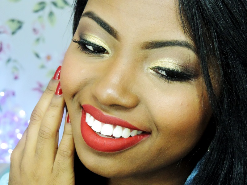 Tudo bom com vocês? Espero que esteja tudo ótimo. Bom dezembro chegou e junto com esse mês vem as famosas festas de fim de ano. E para comemorar essas datas não podemos esquecer da produção né meninas, nada como uma bela maquiagem. E para iniciar os tutorias de vim e ano hoje eu trago uma maquiagem clássica usando a famosa sombra dourada e o batom vermelho. Acho chic e eu adoooro. Vejam o passo a passo!