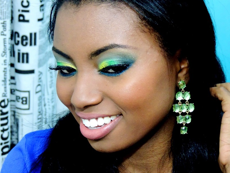 Tudo bom com vocês? Hoje em vim compartilhar um tutorial de uma maquiagem baphonica para você arrasar nessa copa. Muitas meninas me cobram maquiagem colorida, por vim eu resolvi aproveita a copa que estar vindo aí e reproduzi uma maquiagem bem colorida, utilizando as cores da bandeira do nosso país o Brasil. Bom já viram que não ficou nada discreta né. HAHAHA'