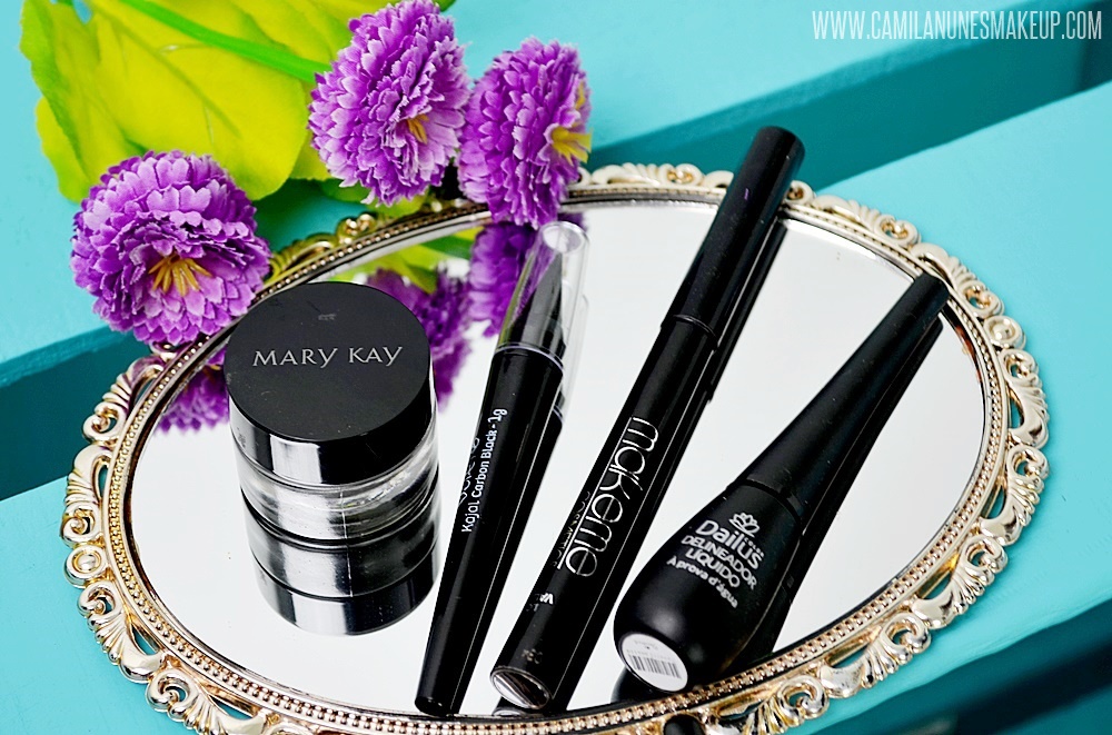 Delineador lápis Kajal: Sim o lápis. Hoje o mercado vem investindo em produtos de maquiagem cada vez mais, e um produto que também pode ser considerado como delineador é o lápis kajal. Além dele ajudar na hora de realizar o delineador sua textura cremosa tem a cor super pigmentada.